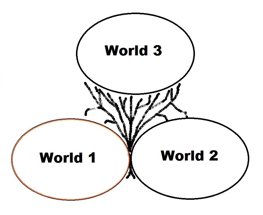 added in me. 8 The outer world to Me is World 1, the inner world to Me is World 2 but the 'Me's in the two worlds is World 3 which is also in my inner world. Between World 1 and World 2, there must be a pool of interaction and an accompanying World 3.